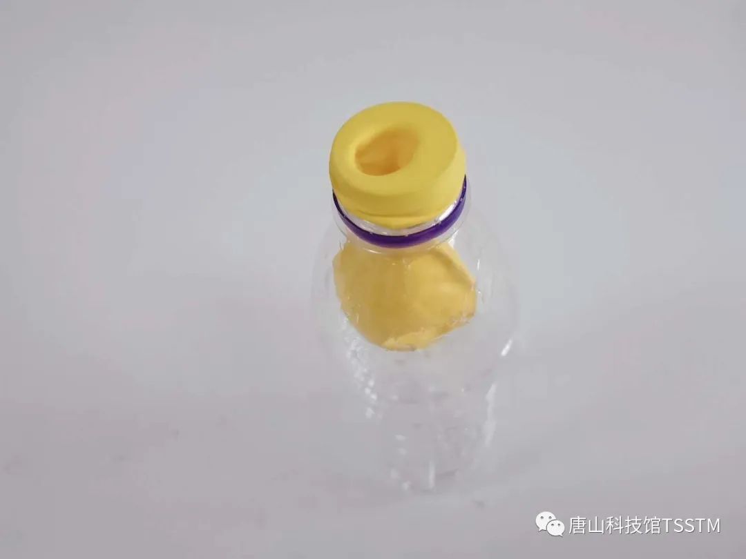2、将气球塞进瓶子,气球口从里面套住塑料瓶的瓶口。